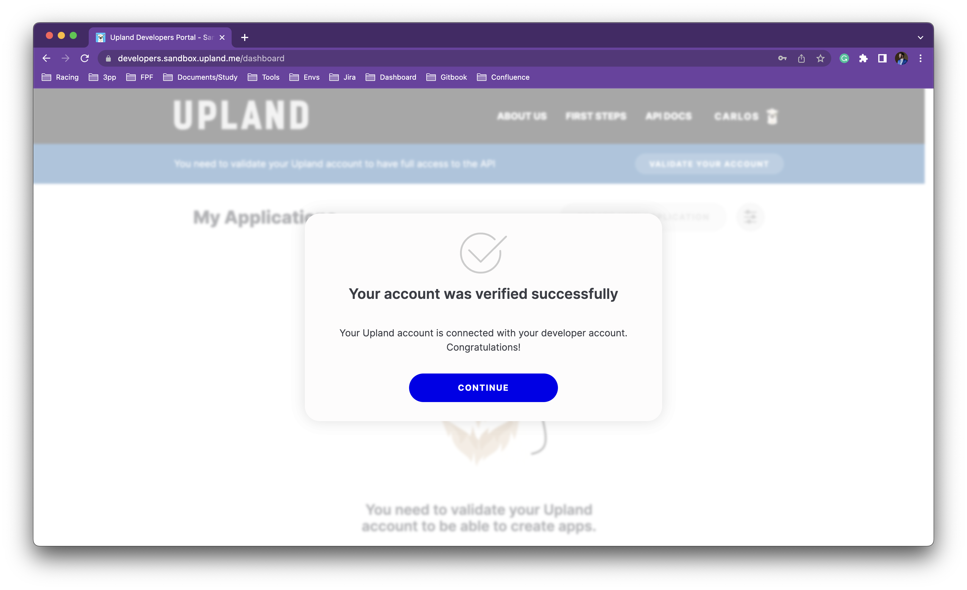 Your Sandbox/Playground Upland account can only be connected with your Sandbox/Playground Developer account.